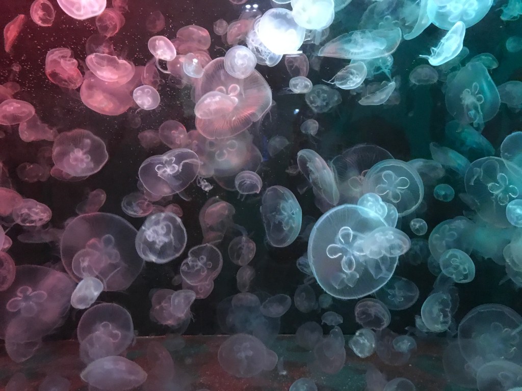 I signed us up for a surfing lesson later that afternoon. Russ and I were walking over to where our lessons were and saw the waves…we were like “let’s not”. We opted to hit the Aquarium de Biarritz instead. What a cool spot this is! We enjoyed getting lost in the beauty of the ocean…and it’s creatures! We experienced a ballet of jelly fish!