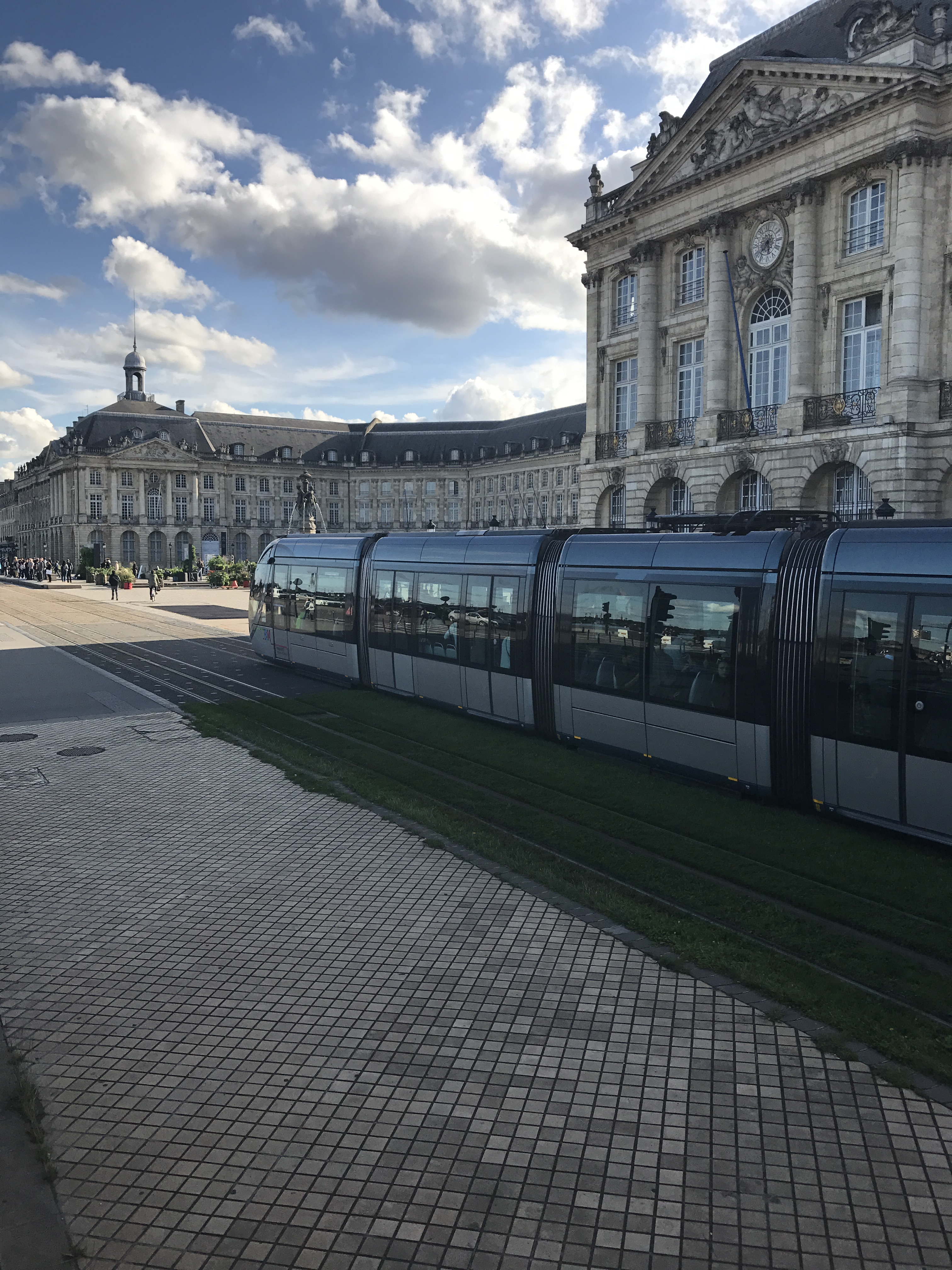 We jumped back on the train and 2 hours later we arrived in downtown Bordeaux. The architecture…it’s just oozing with history! I LOVE Europe! We find our Airbn’b, which is right in the center of the city with a rooftop! Russ is SO good at finding places to stay. I don’t know how he does it! We decide to take the Hop on Hop Off Bus around the city to get our bearings and learn alittle more about this stunning city. Of course, we bought a bottle of wine for our bus ride. When in Bordeaux! 😉