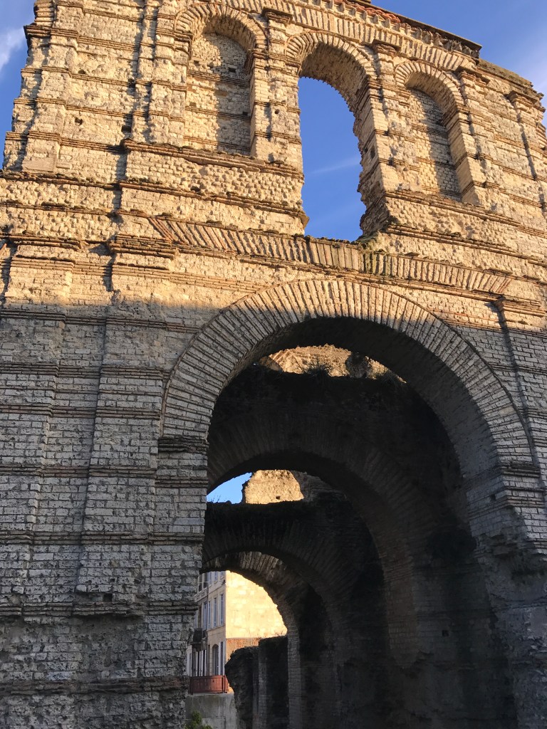 We are right across from the Palais Gallien, which was built in the 2nd century AD, during the period of Roman rule in Bordeaux. It was built as an amphitheatre to accommodate over 22,000 spectators.for public events, including gladiatorial fights, animal hunts and theatrical performances. The building was only used for 10 years. In 276 the Franks burned the arena for 2 days. The stone walls are the only remnants left. I mean….I feel so small surrounded by this rich history!