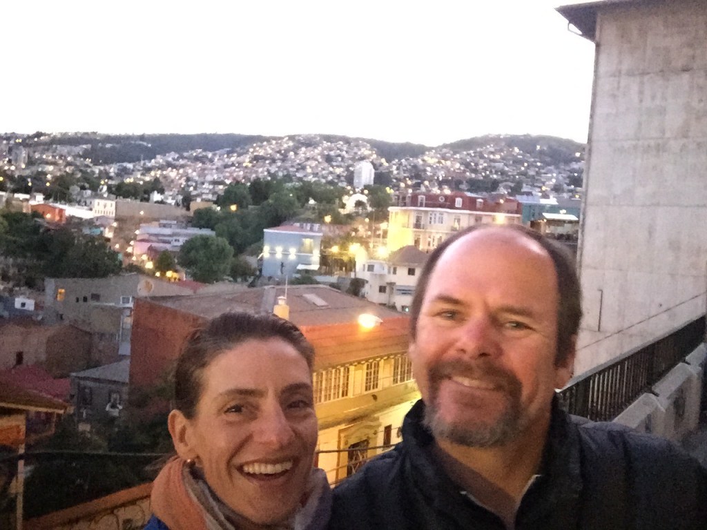 As much as we didn’t want to leave Pucon, we were ready to get to our final destination, Valparaiso. At this point we are so over bus rides, somehow we found an airport not too far from Pucon. When researching our travels, we read that when you get on the bus that takes you to the airport, you have to stop mid way (in the middle of the highway), and grab a taxi to take you there. The bus doesn’t usually make this stop unless asked, it takes you to it’s final destination, which is far past the airport. When we arrived at the bus station, we were trying to tell our bus driver our plan but the language barrier made it challenging. We just got on and went with it, figuring we’ll get there somehow. The bus was PACKED, Russ was sleeping and we come to a sudden stop. This man comes down the aisle while waving at me to follow him. I wake Russ up and we squeeze through the crowded bus to follow the man. We exit the bus, he has our luggage and a cab waiting on us. Our bus driver did understand us! It was a miracle! We graciously bid our farewells and carried on the airport. We flew to Santiago took a cab to Valparaiso. Magic!